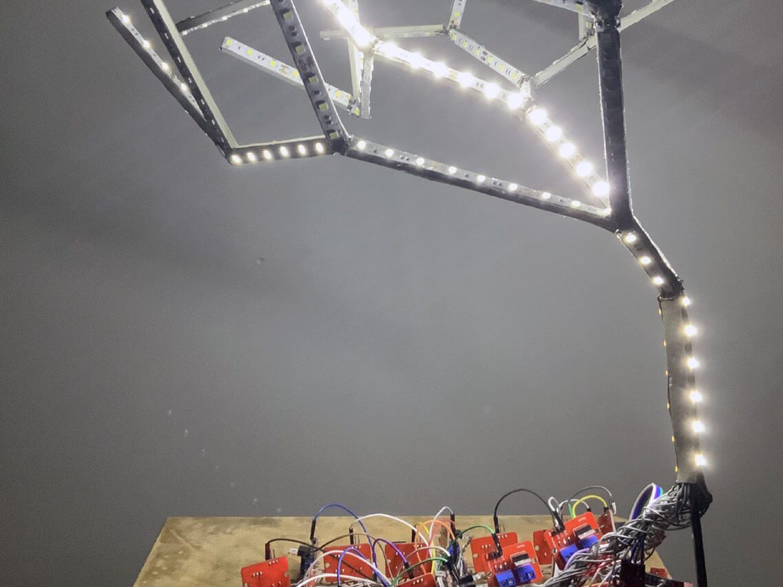 Çalışma, doğadan kaydedilmiş kuş seslerini algoritmalar aracılığıyla sürekli yeniden düzenleyen bir ses yerleştirmesidir. Her an seçimler yaparak eklemlenen akışı, rastlantısallık ve kurallı yapıyı bir araya getirerek izleyiciye tekerrür etmeyen bir deneyim sunar.LED ışıklarla desteklenen yapı, ...